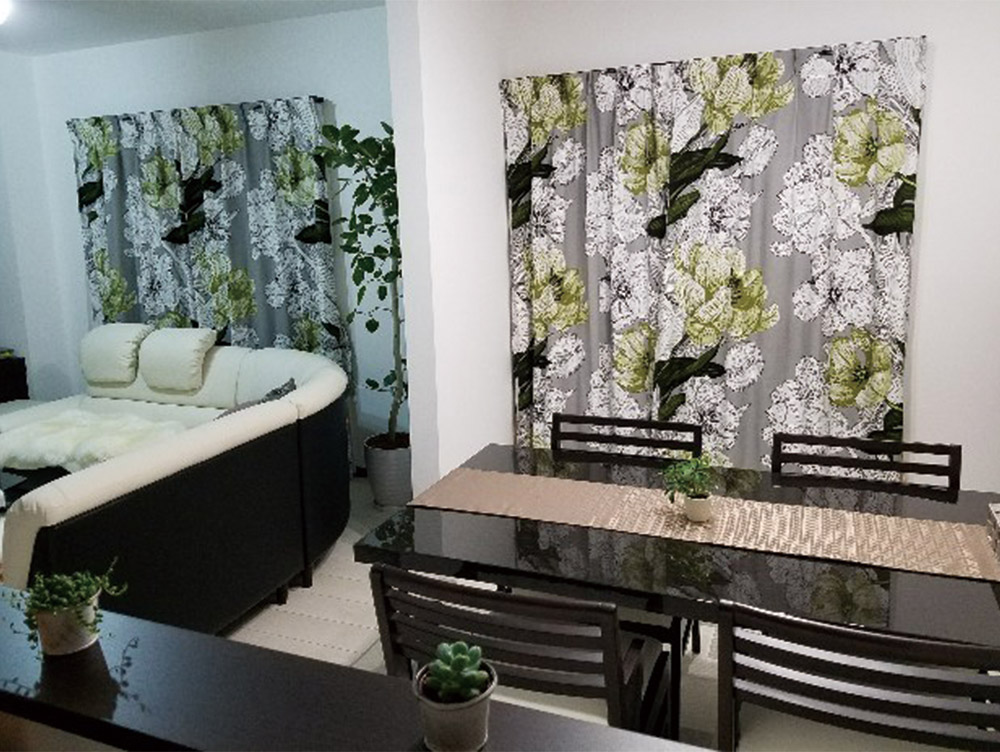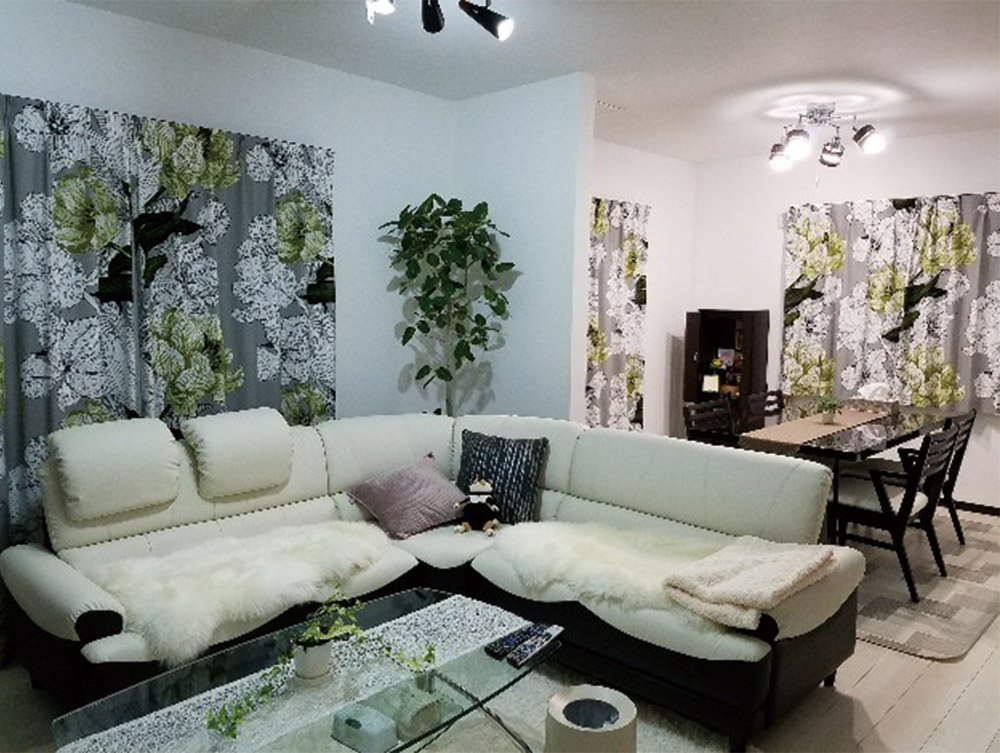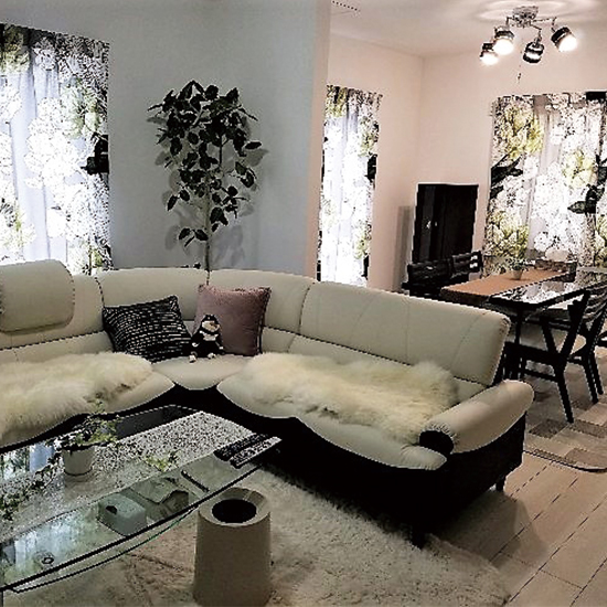 リビングダイニング用カーテンは柄物は飽きると家族から反対されましたがどうしても私が気に入ってしまったので反対を押し切り頼みました。