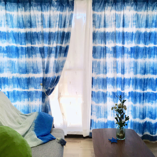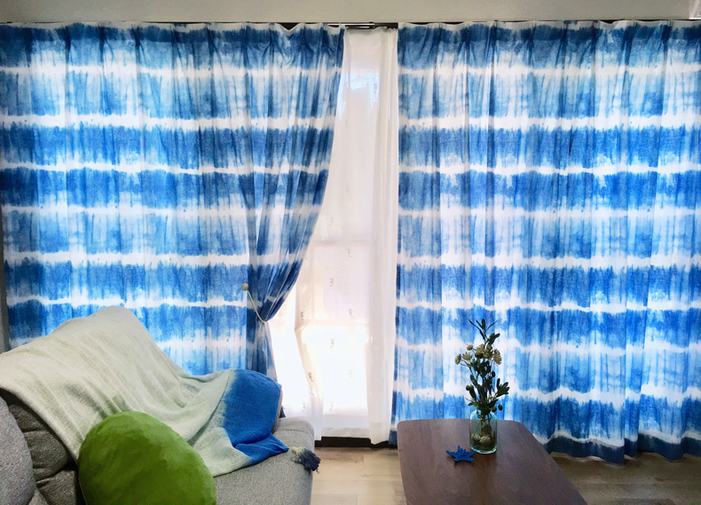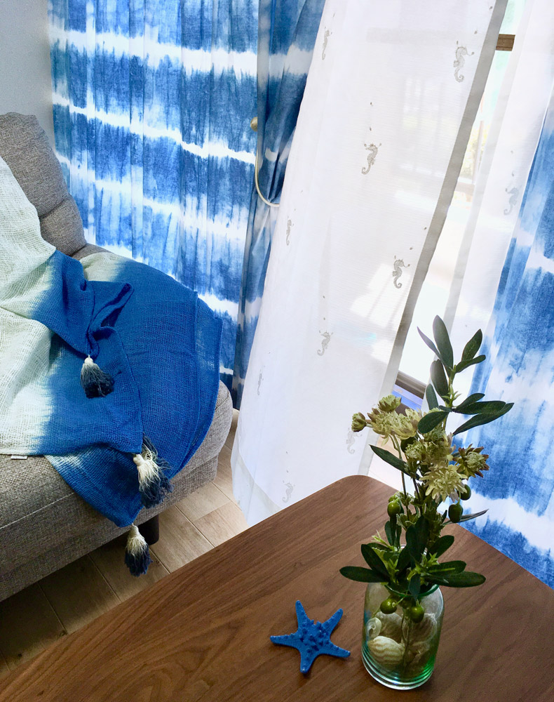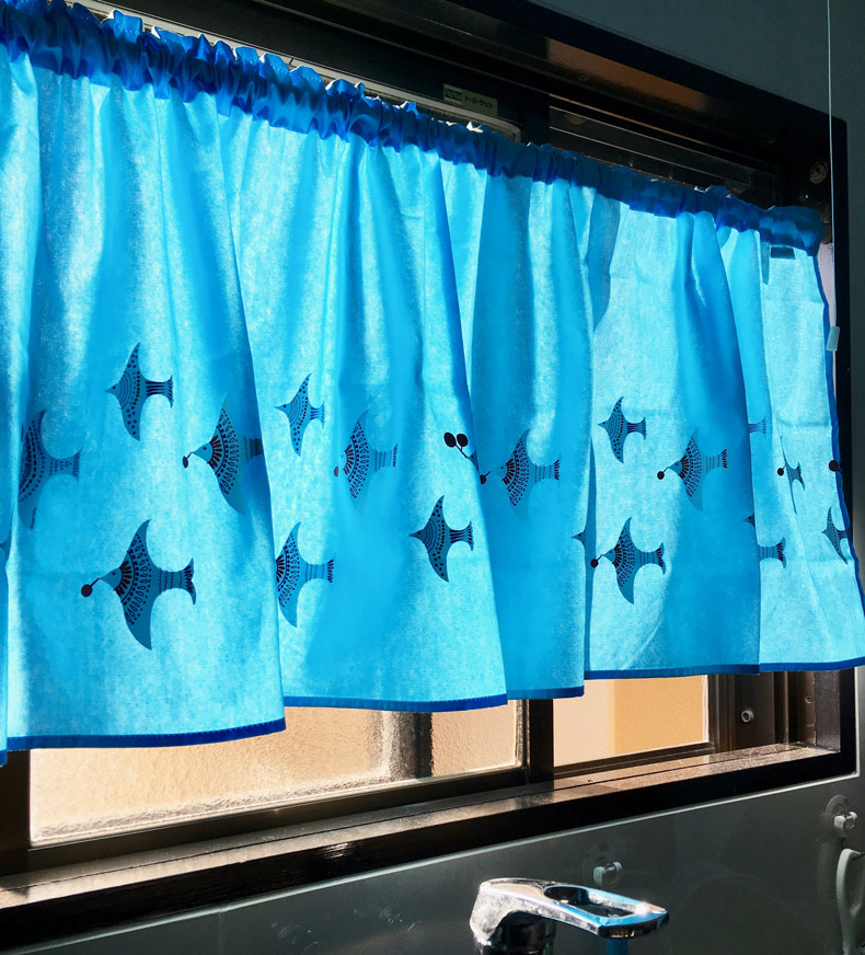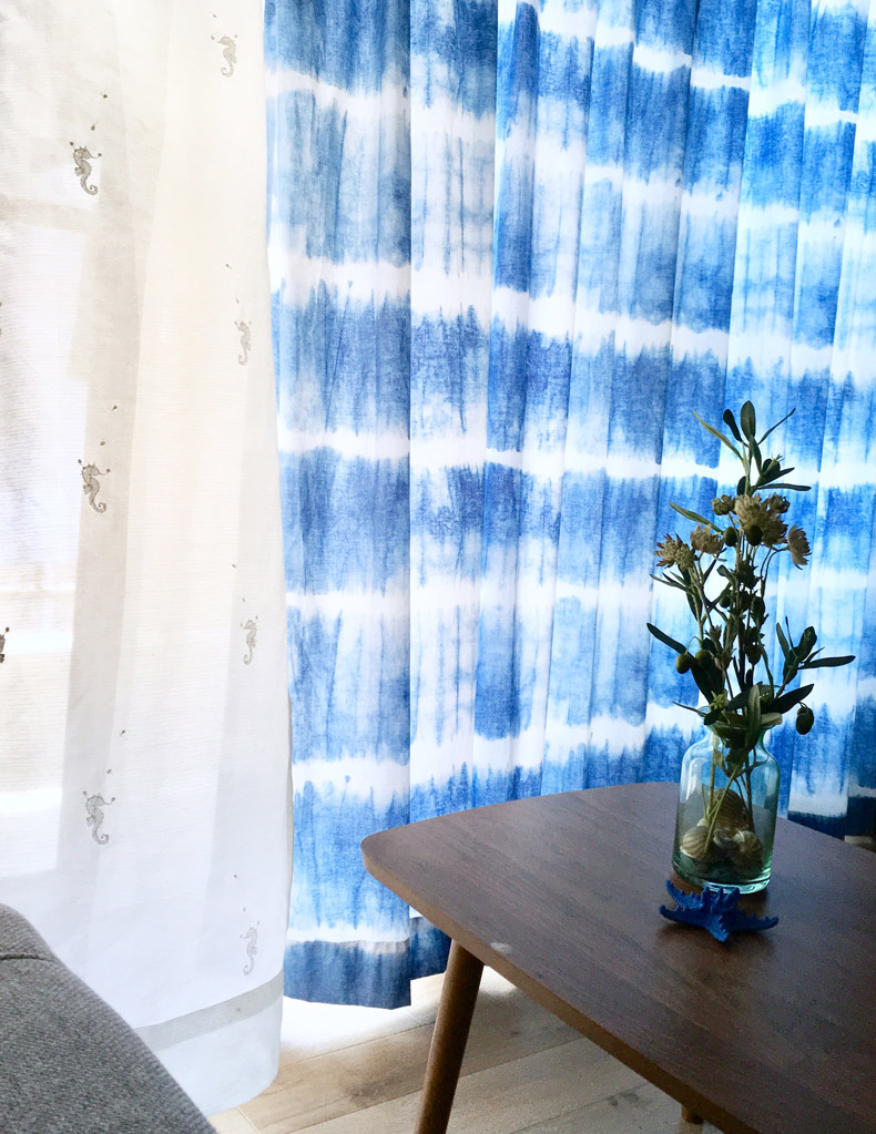 海が家から近いのですが、残念ながら窓から見えないのでカーテンで海感を出しました。