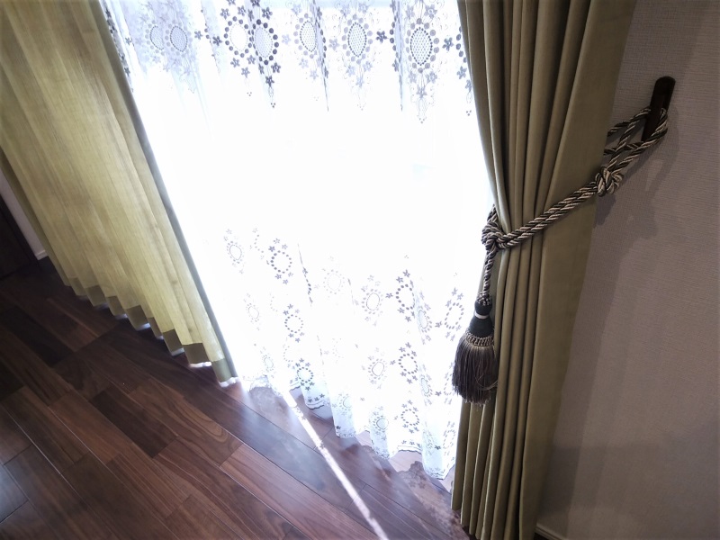 タッセルも付けたところ雰囲気が全く変わり、朝から窓を眺めるのが楽しみです。