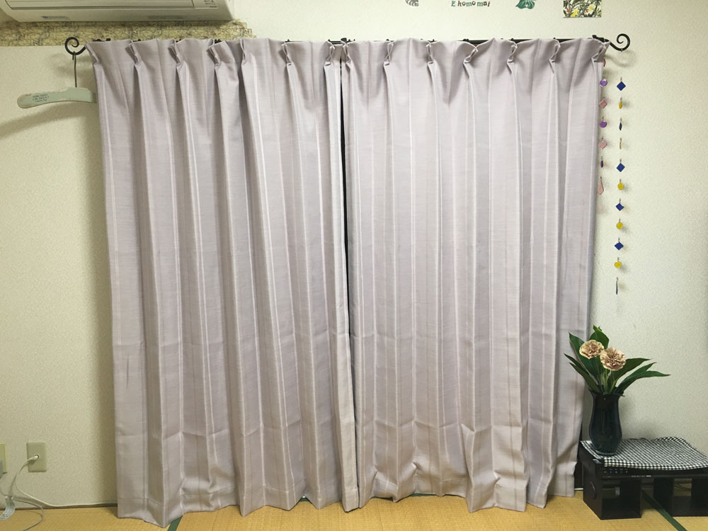 こちらは長い裾と左右の端がリターン仕様になってるのが特長で断熱効果に優れたカーテンです(b≧∀)