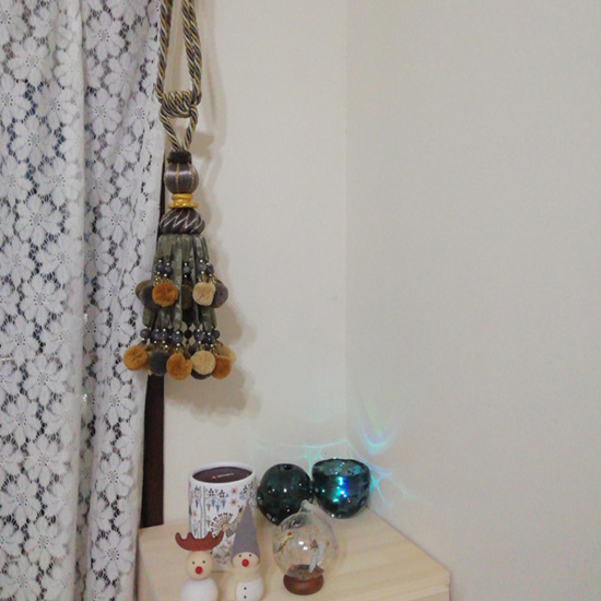 カーテンタッセルとしては使用していませんが、かわいらしいインテリアとなりました。他の色のも欲しくなりました!