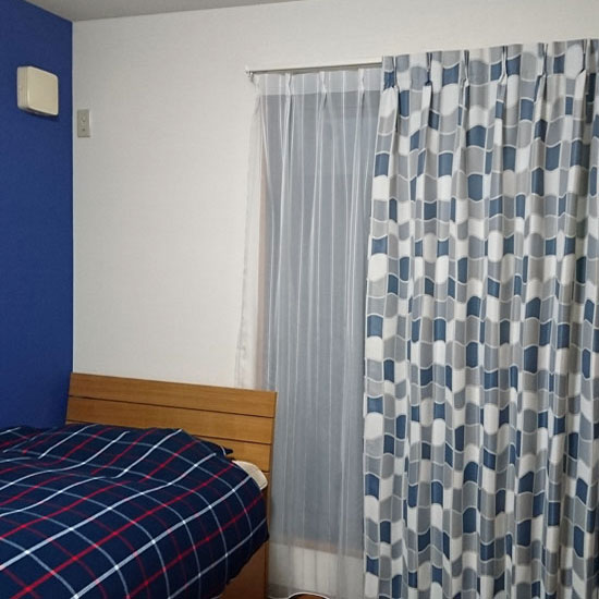 中高生の息子たちの部屋の壁紙を張り替えたのを機に、ブラインドからカーテンにしようと注文しました。