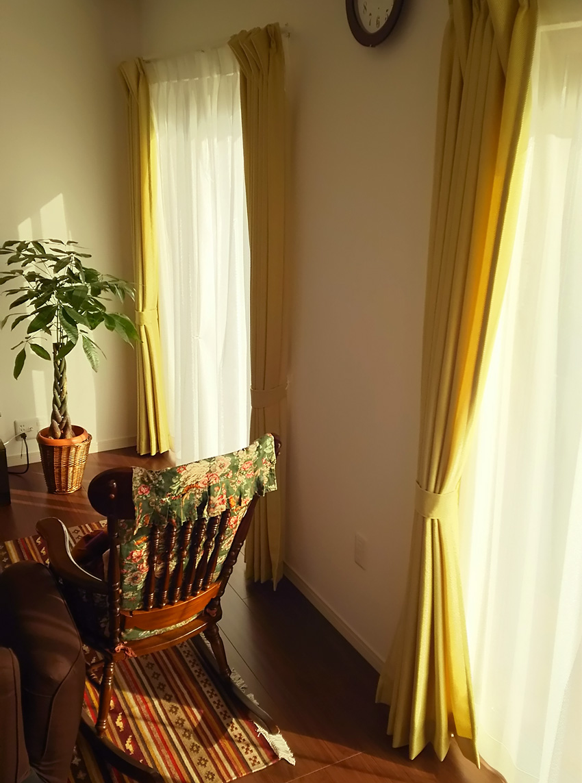 部屋の床がダークオークなので、カーテンは明るい色にしたいと思い、黄色を探して店舗もいろいろ回りましたが、