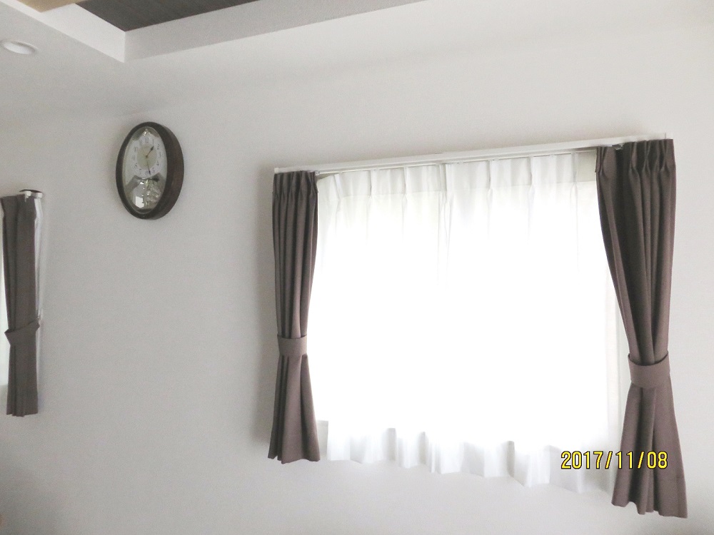 レースカーテンをお部屋側に掛ける欧米のスタイルです。