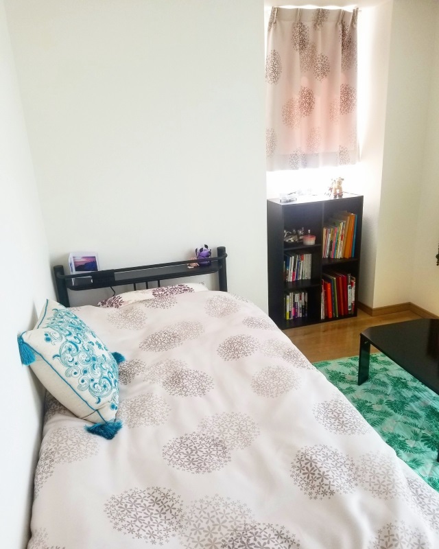 ベッドルームとカーテンお揃いの空間は、とても心地よく、見てるだけで幸せな気分になり、とても大満足です!