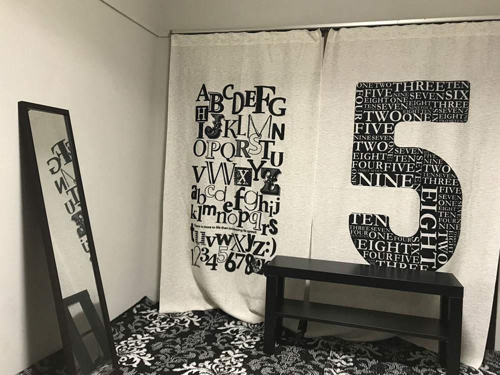 また、ヴィンテージタペカーテン<フォント ブラック><ナンバー ブラック>がお部屋によく合っております~(⌒∇⌒)