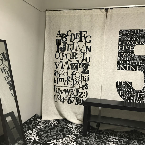 ■間仕切りにも使用できる、ヴィンテージタペカーテン <フォント ブラック 幅100×丈180>