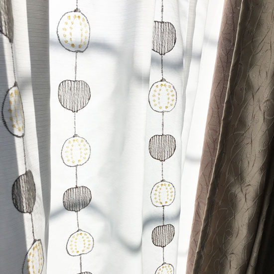 <レース フォレ・ドゥ・グラン イエロー>は遮熱・遮像・ウォッシャブル・UVカット率81.7%と