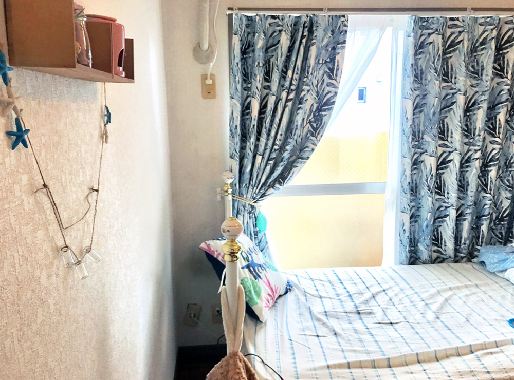 寝室のカーテンに<リーフブッシュ>をお選びいただきました。