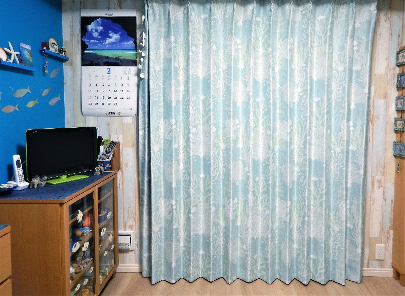 カーテンを引いた部屋はちょっと海の中に居るみたいで落ち着きますよ。とても気に入ってます♪