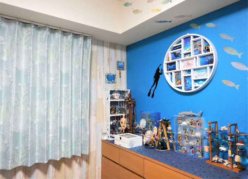 海を愛するダイバーなので、引っ越しを機に自分の部屋も念願の海モチーフ仕様へ。