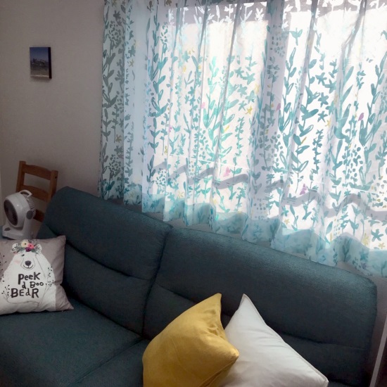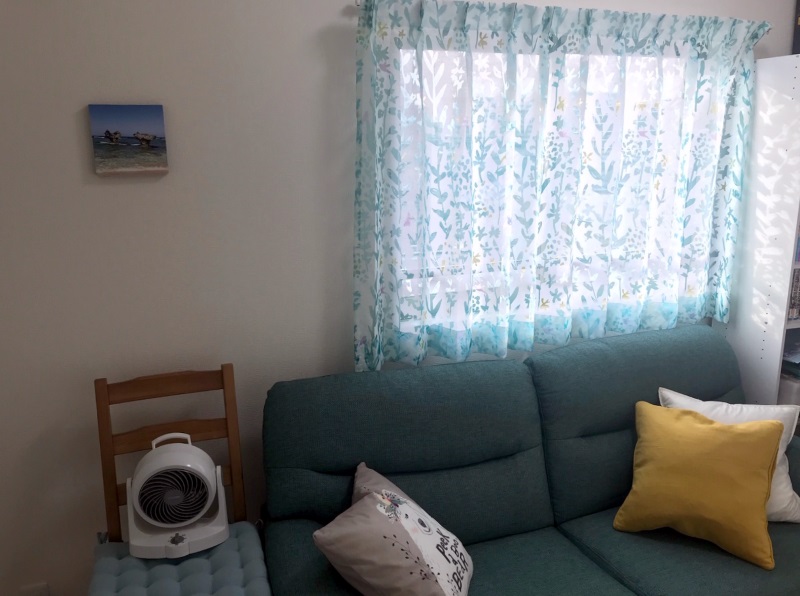 北北西の窓で日差しはそんなに強くなく、逆に日陰の事が多いので、あえてレースカーテンのみで利用していま