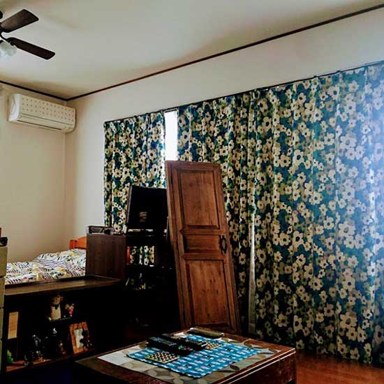 お部屋は元々無地のカーテンをお使いだったとの事、大分と印象が変わったかと思います。