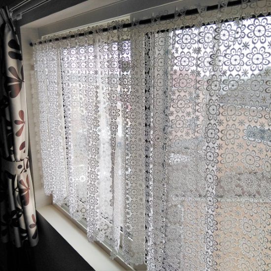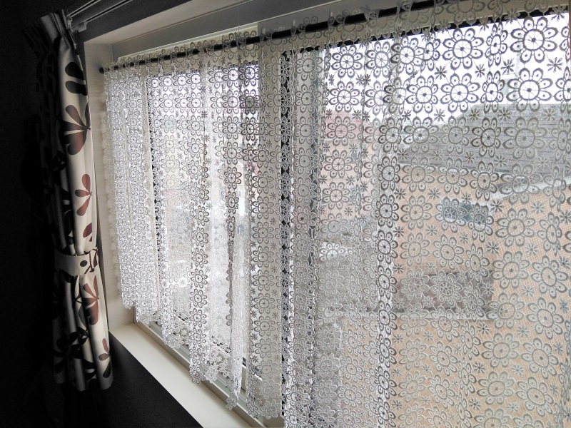 寝室のレースカーテンを外して、カフェカーテンにしたく、ずっと探し続けていました。