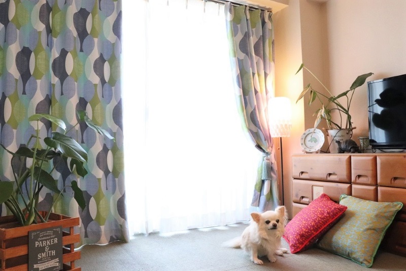 部屋の雰囲気を変えたくて、こちらのヒエッカブルーのカーテンを選びました。