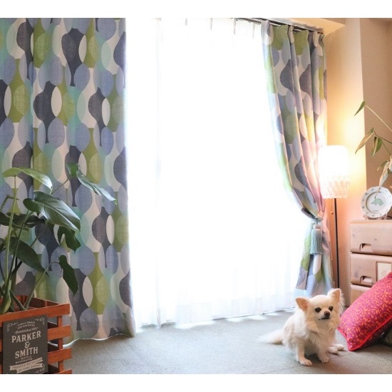 グリーンがかった優しいブルーでカーテンにピッタリです。