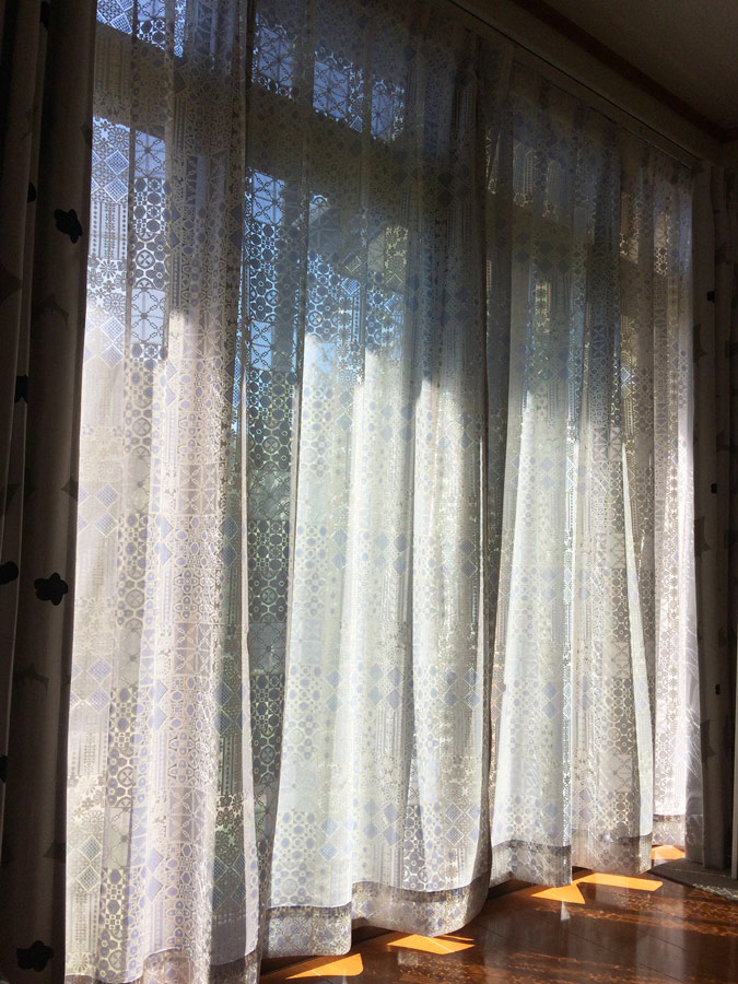 こちらのデザインは、本当に柄が全体に入っているので透け感がよく、デザイン面でも大変おすすめのカーテンです。