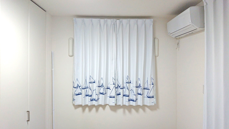 真っ白なお部屋にヨットの柄が良く映えていますね!清潔感があって素敵です(*´∀`*)