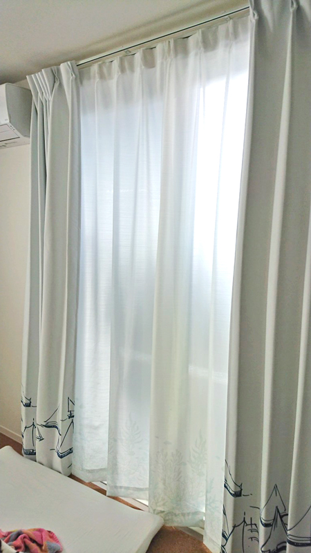ドレープはグレーに近いホワイトで部屋が広く見えます。デザイン、色、生地ともにとてもきれいでした!