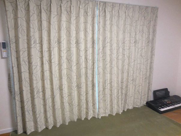 厚手のカーテンも閉じたときに圧迫感がなく柄がモダンな感じでとても素敵です。