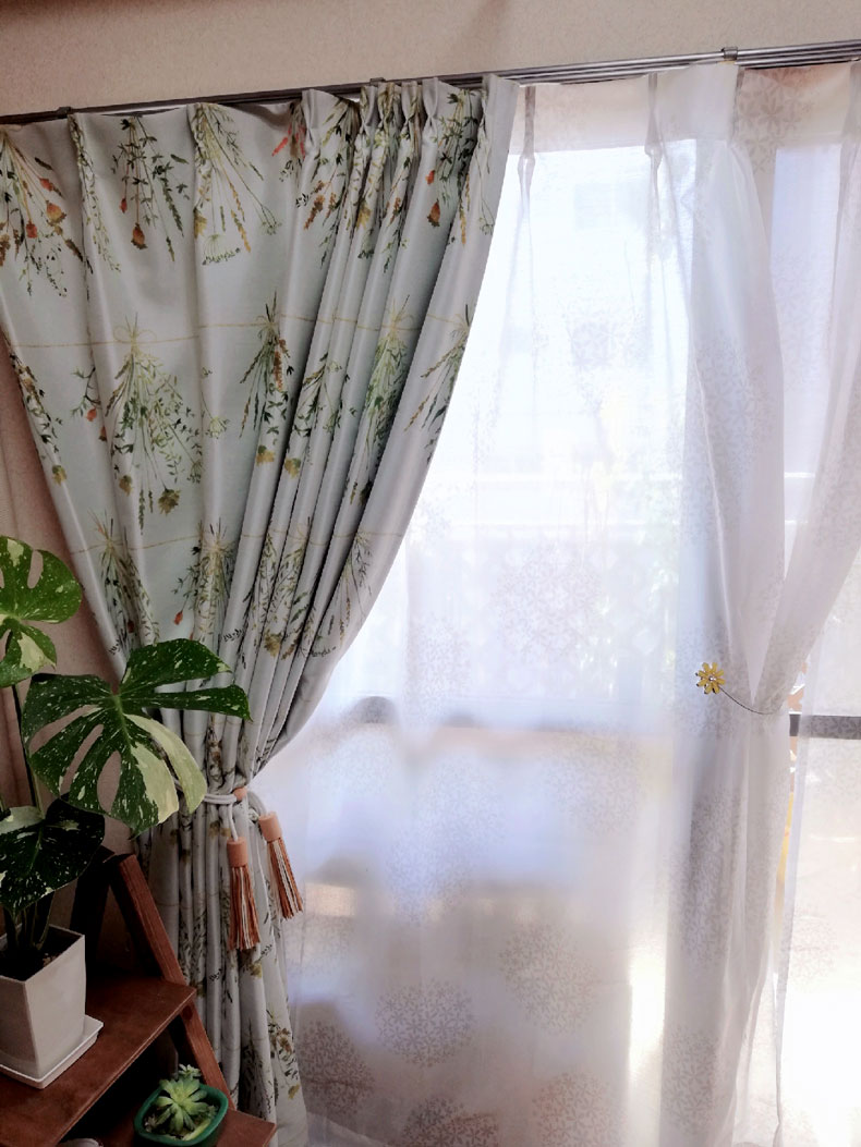 お花が丸く集まった可愛らしいデザインはいろんな厚地カーテンにも合わせやすくおすすめです。