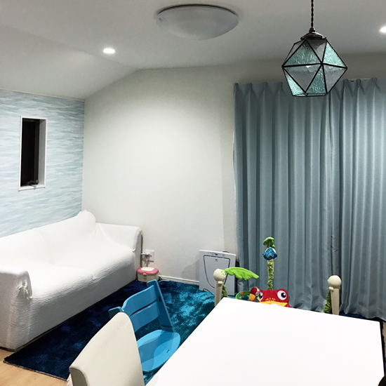 白に一面だけ水面のような水色の壁紙を選んだリビングだったのでイメージは海でした。