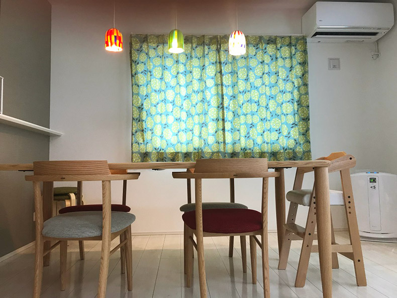家具も温かみのある木製のものをご使用頂いておりましたのでカーテンとも相性抜群でした♪
