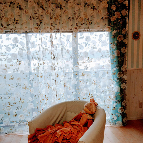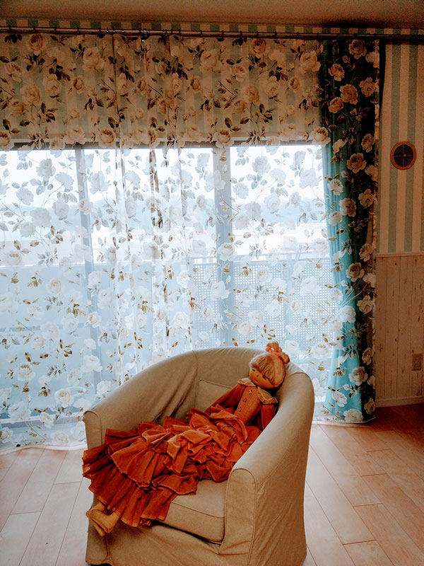 お人形さんやスペイン産のカーテンとお部屋の雰囲気も相まって