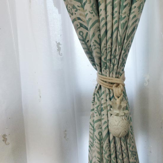 合わせていただいたトロピカルタッセルはボリュームがありますが、だからこそ!シーサイドウォークの柄に負けていません!