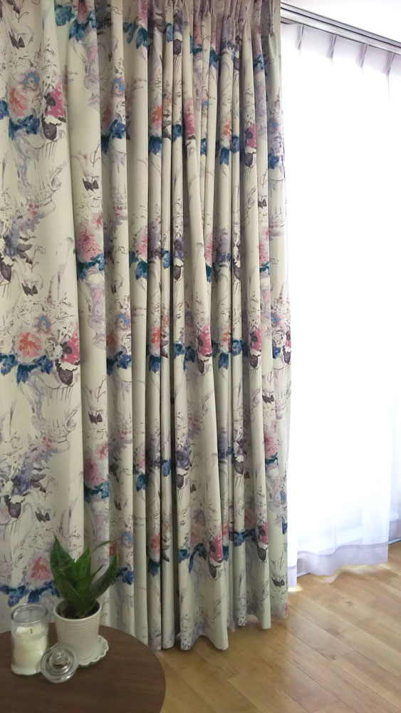 100サイズ・1級遮光・形状記憶付きのエレガントな花柄カーテン <peinture – パンチュール ピンク>