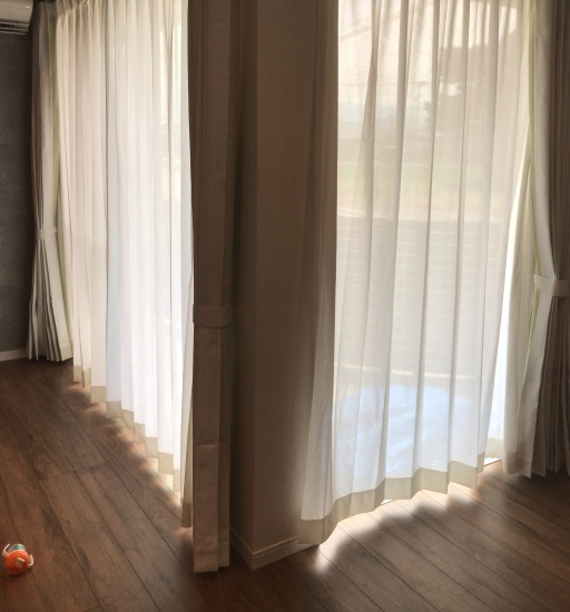 南側からの陽当たりを抑えてくれる機能性カーテンを選びました。