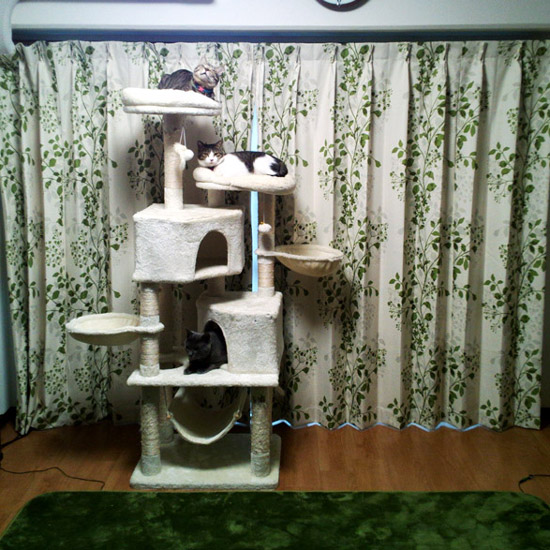 リーフ柄の中で猫ちゃんもゆったり寛いでいて、