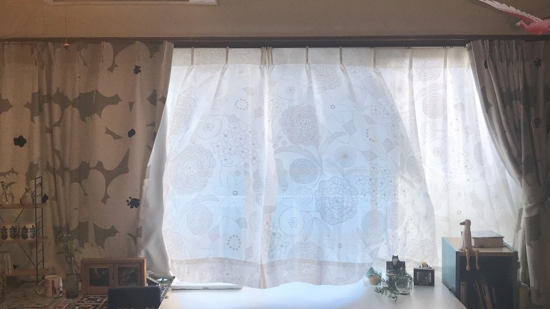 横長で高さのない特殊なサイズな窓だったのですが、細かくサイズを調整していただくことができ、遮光とレースの長さもぴったりでよかったです!