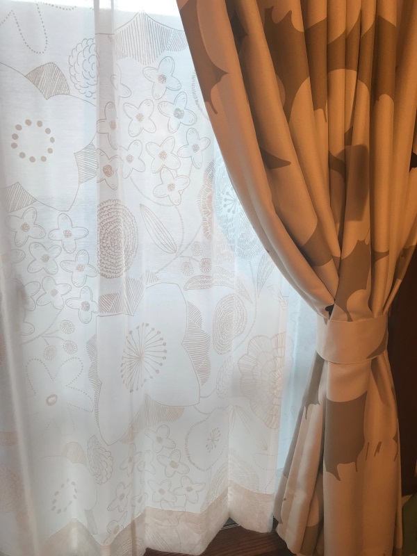 電話で相談し、ようやく<テュット ベージュ>と、<BLOMMA- ブロンマ ペアレースカーテン>の組み合わせに決めました。