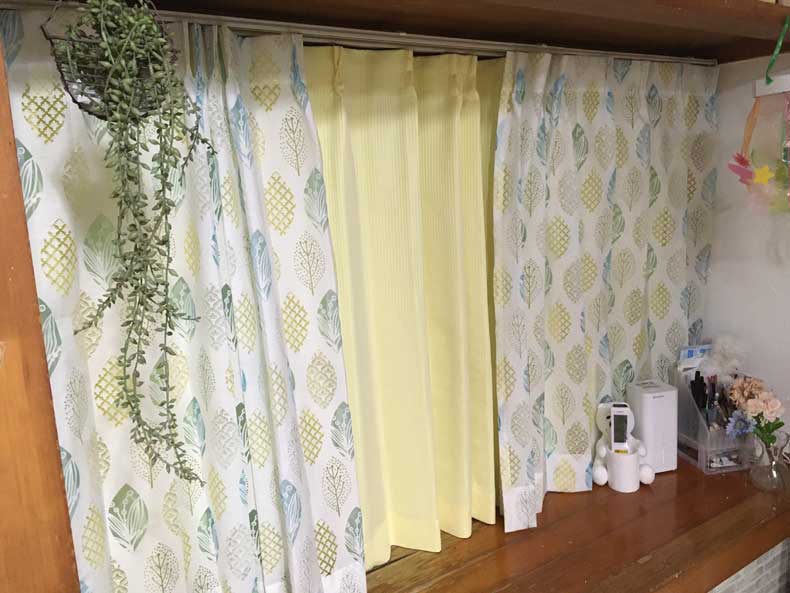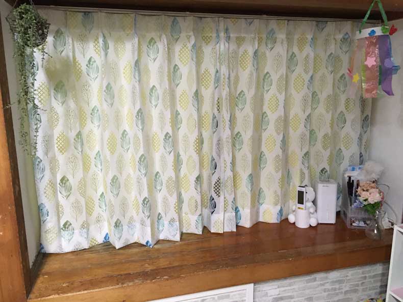 カーテンをつけて、部屋の中に花が咲いたようにパッと明るくなり嬉しいです^ ^