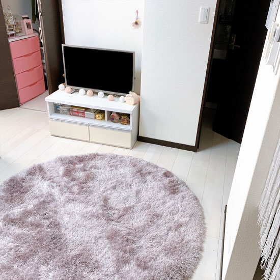 お部屋の色合いが統一されていて、<円形リブラ モーブ>が非常にポイントなって素敵なお部屋です!