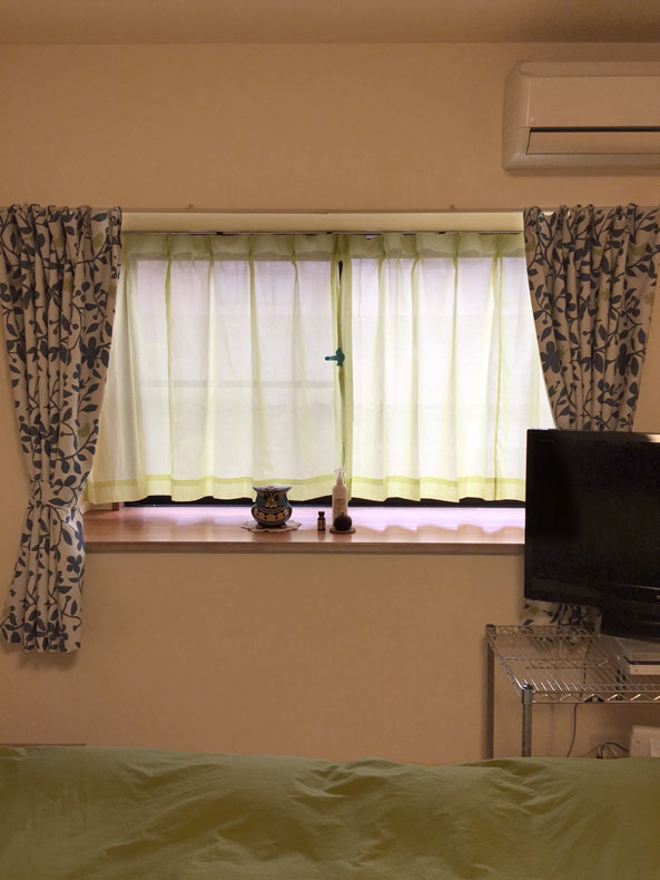 厚手は以前に注文した遮光カーテンです。(これも遮光具合が大正解)