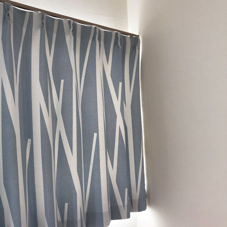 ■<北欧調> 100サイズ・防炎・遮光2級・北欧デザインカーテン <ランカ ブルー>