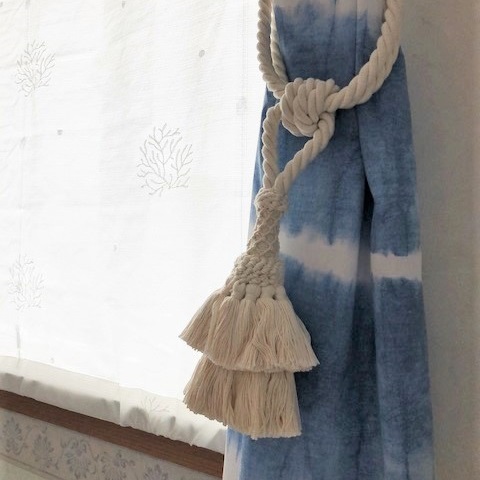 「バドゥナチュラルタッセル」はデザインがかわいく、マリンテイストなカーテンとの相性抜群です。