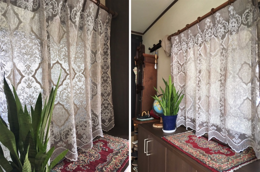 玄関でしょうか?<ロクムタイム>のレースカーテンがお上品ですね~~♪♪