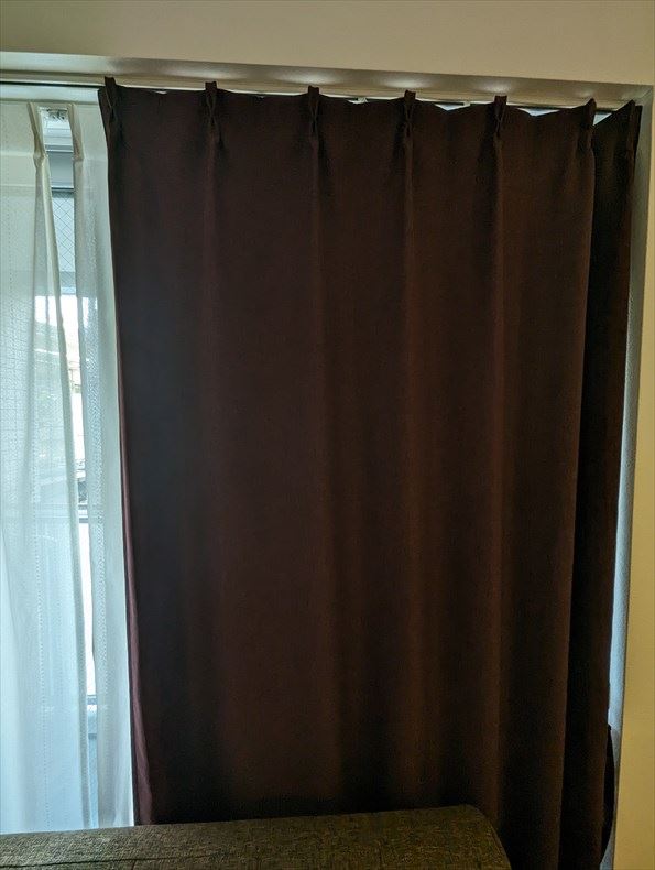 納品されてからすぐに付け替えて遮光カーテンがどれだけ朝の日差しを遮ってくれるか、