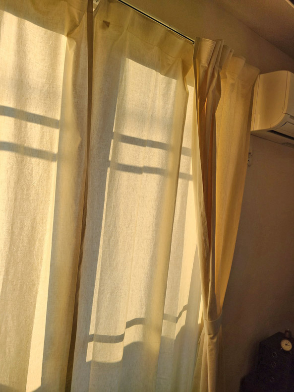 昼間は一枚で、自然光が入って明るくなりました。