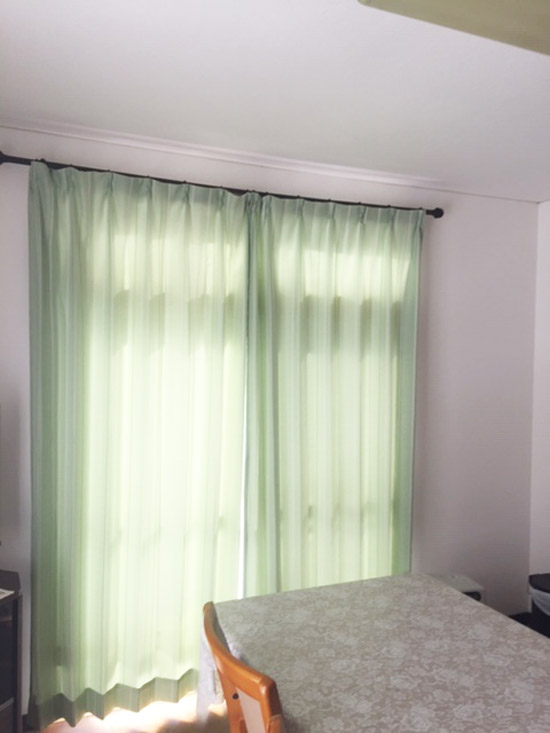 非遮光のカーテンは自然な光を取り入れてくれるのでリビングなどでお使いいただくと