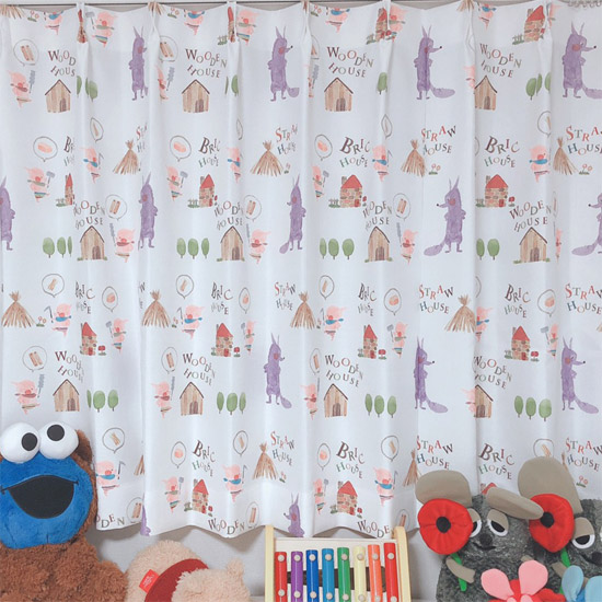 今回、びっくりカーテン様で、三匹の子豚のカーテンを2枚購入させて頂きました。