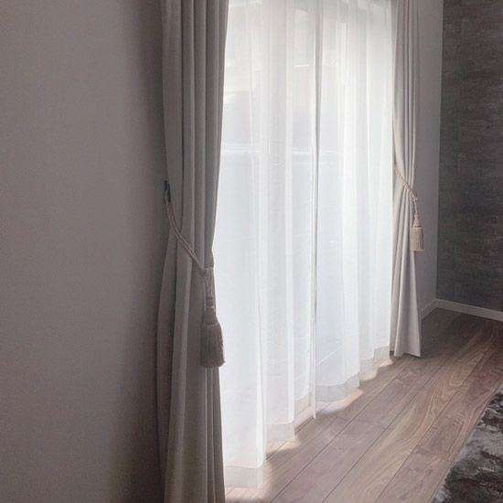 厚手カーテンもアイボリーにしたので圧迫感なくて高級感あって、いい感じです!