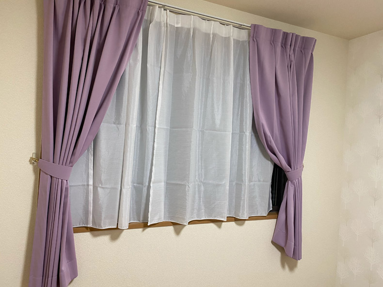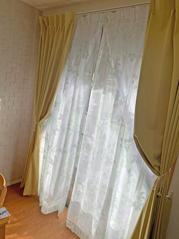 二重レースカーテンなので、その日の気分や天気、明るさ、人通りなどその時の条件で自由に使えるのが良いです!