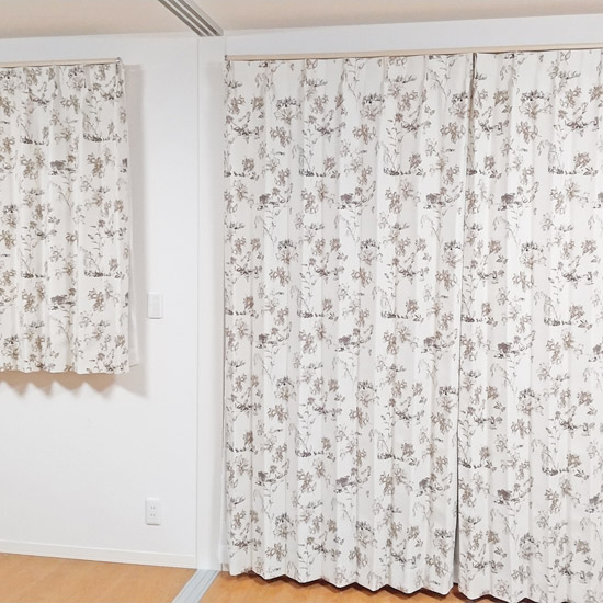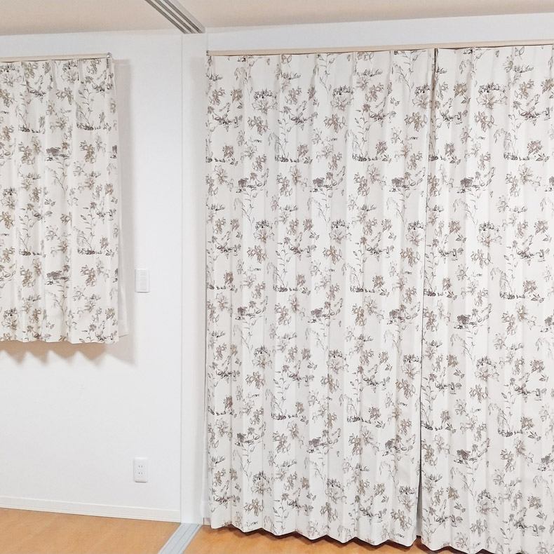 ご感想にもございますように、パッと見た感じではシックな花柄のカーテンかな?と思いますが