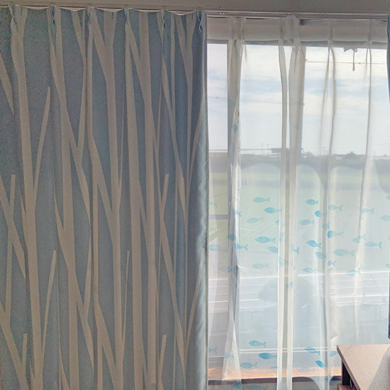 魚のレースカーテンと北欧風のカーテンとタッセルを購入しました。