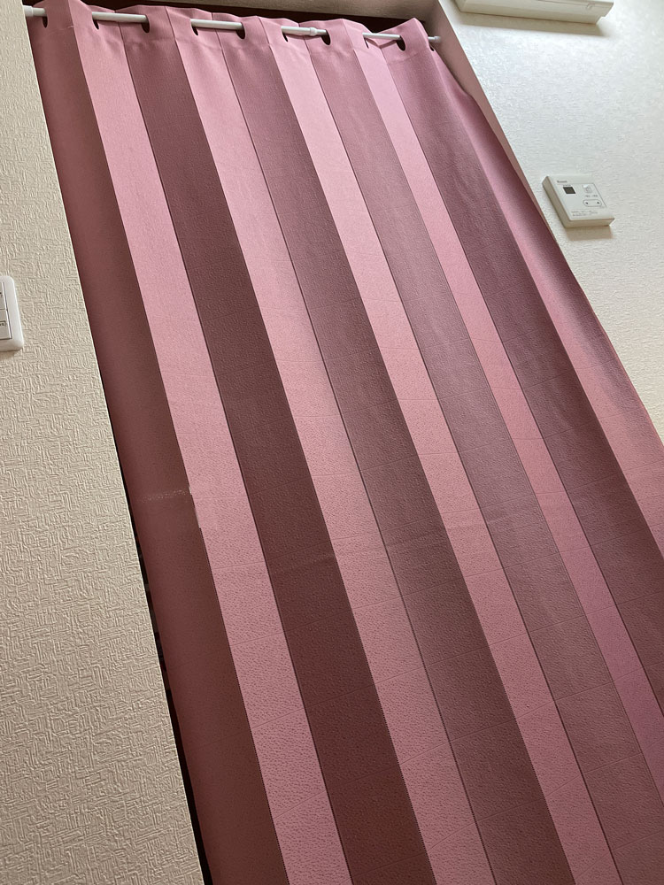 今回お客様がお選びいただいた、<フラワー ピンク>は、パタパタたためて便利なアコーディオンのれんです。