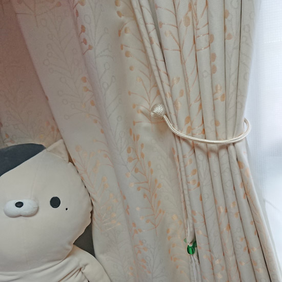 ピンクのカーテンのほうは昨年購入しました。